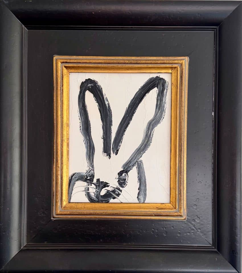 Hunt Slonem begann schon vor langer Zeit damit, jeden Tag mit dem malen einiger Hasen zu starten. Vor etwa dreißig Jahren hatte er eine Ausstellung in Richmond, und wie alle jungen Künstler kein Geld für Rahmen. Er ging viel auf den Flohmarkt und fing an Fotorahmen aus dem 19. Jahrhundert zu kaufen. Es gab ein Standardformat 8×10 inch. Er begann, in diesem Format zu arbeiten. Die Rahmen veränderten seine Art zu arbeiten. Er kaufte literweise weiße Farbe um nass in nass zu malen. Das war der große Durchbruch für Hunt Slonem als Künstler. Von da an waren seine Bunnies überall zu kaufen.