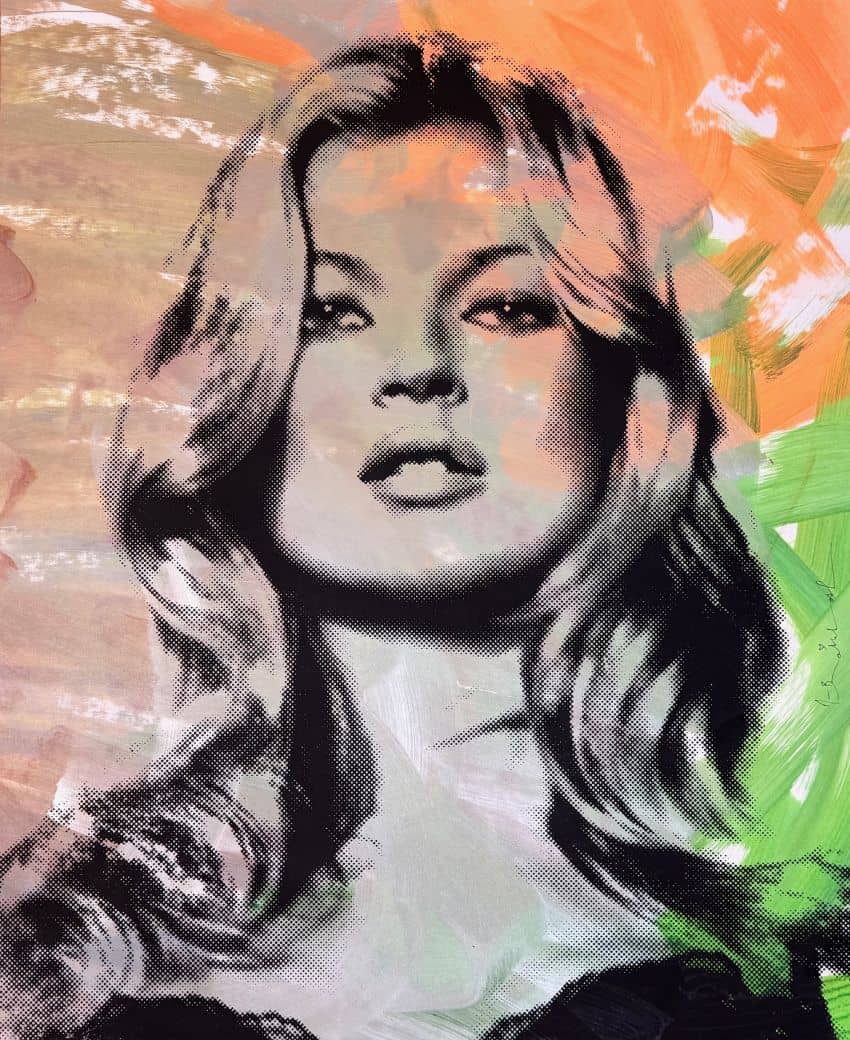 Kaum ein anderer Street Art Künstler hat einen vergleichbar rasanten Aufstieg erlebt wie der 1966 in Garges-lès-Gonesse geborene Franzose Thierry Guetta aka Mr. Brainwash. Eng verbunden ist sein Weg zum erfolgreichsten Künstler der letzten Jahre mit dem Namen Banksy und dessen Oscar prämierten Film Exit Through the Gift Shop: In diesem Dokumentarfilm regt Banksy den damals noch unbekannten Guetta an, unter dem Pseudonym Mr. Brainwash selbst als Künstler aktiv zu werden. Kate Moss ist dabei ein Motiv aus der Anfangszeit von Mr. Brainwash.